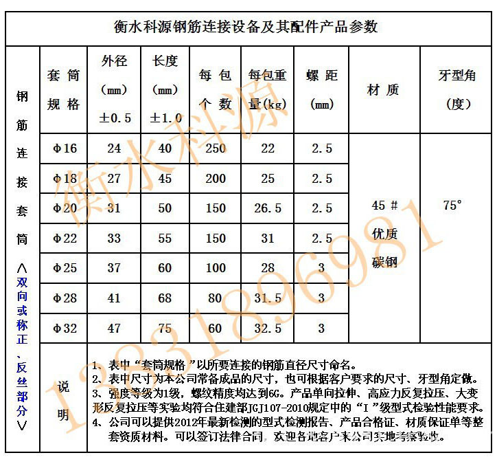 衡水科源鋼筋連接設備及其配件產(chǎn)品參數(shù)